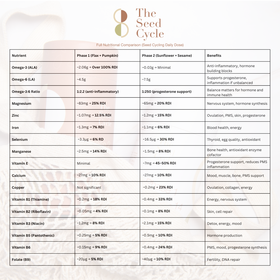 Note: This comparison table is for general wellness and educational purposes only. Seed cycling is a food-based practice, not a therapeutic product, and is not intended to diagnose, treat, prevent, or cure any medical condition.